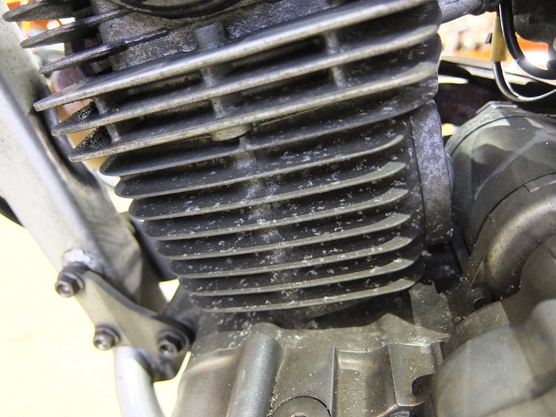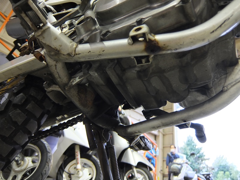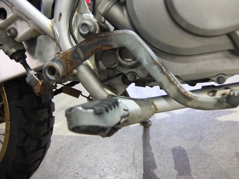 例えばサビが強く曲りのあるステップやブレーキペダル、サビで覆われたスポーク、空冷エンジンフィンの腐食、ダウンチューブの傷や塗装はげ、フレームネック部分の錆びや塗装はげなどです。