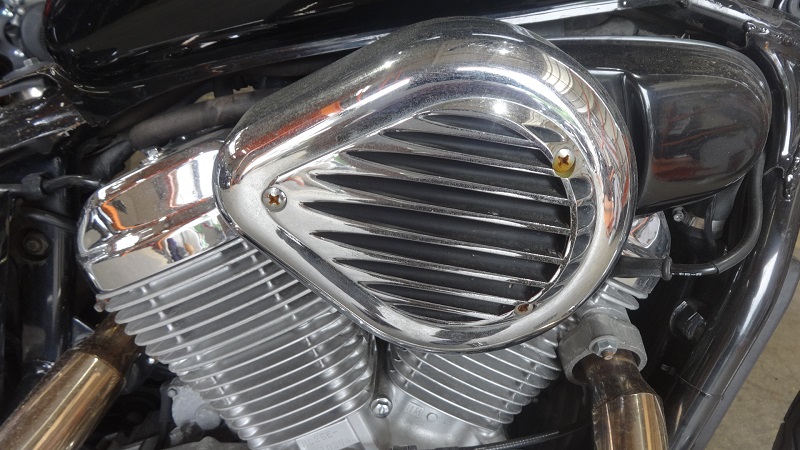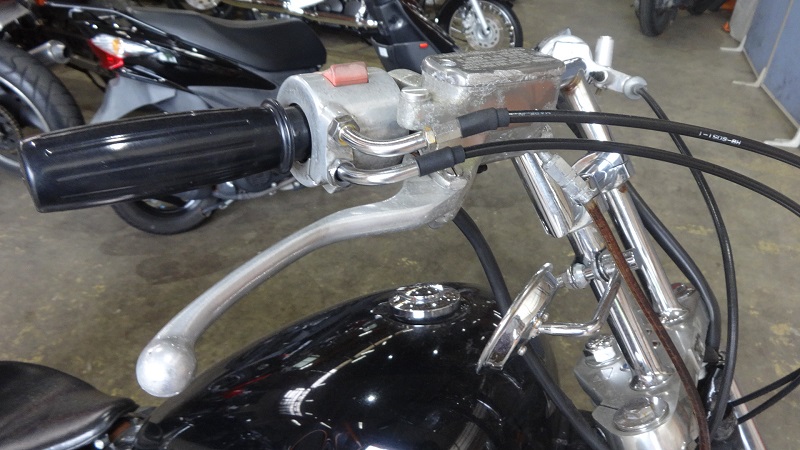 社外メーターに交換されており走行距離は不明ですが、Vツインエンジン回りは使用感が少なく綺麗です。おーアンー様の日頃のケアが垣間見える箇所でもございます。