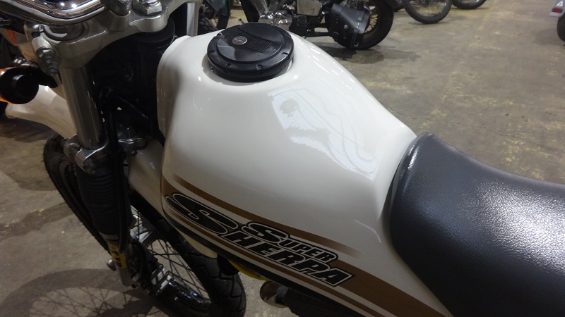 今回、岸本様のご所有されていたカワサキ・スーパーシェルパは、ヤマハ・セローと並ぶスーパーローギアードの1速が特徴の名トレール車で、絶版化してからのコアなファンが多いマシンのひとつです。