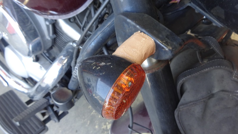 現車の方は、アパート駐車場でいたずらに遭ったとの事前相談の通り、右側の前後ウインカーステーが根元から折れてしまった状態。