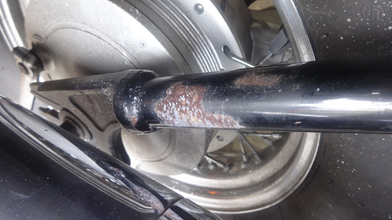 オーナー様の2005年モデルは2トーン仕様にペイントされたメーカー塗装の色艶が良いノーマル車です。走行距離は1万キロと比較的浅く第一印象で高額査定を予感いたしました。査定を進めていくと、塗装が剥げ下地が露出しているスイングアーム、ホイールスポークの錆など所々でやや強めの劣化が散見されましたが体制への影響は少ない細かい減点です。Vツインエンジンは少々腐食は浮いておりますが、オイル漏れも無くアイドルも吹け上りも良好です。またサドルバッグは使用感がありましたがオプション品ですので純粋にプラス査定に。