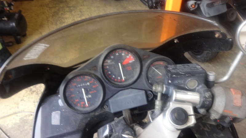 オーナー様のMC17型は、パッと見て屋外で保管されていたと見受けられる汚れ・色褪せ・錆びなどがやや目立っていました。細部を見ていくと足回りのやや強い錆びや使用感が見て取れます。外装は色褪せ、やや目立つ傷も散見されます。見た目の評価は20年以上前の個体としても平均を下回る状態です。ですが走行距離は1万キロ台前半と比較的浅く、エンジン状態が良好であったのはプラス評価です。