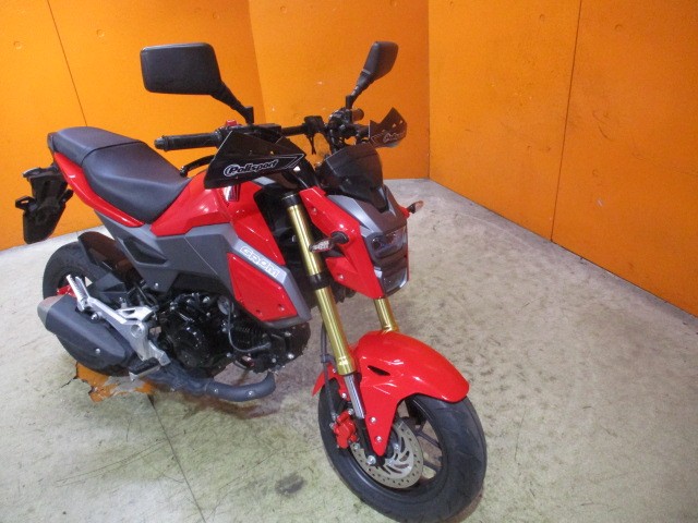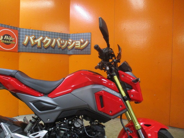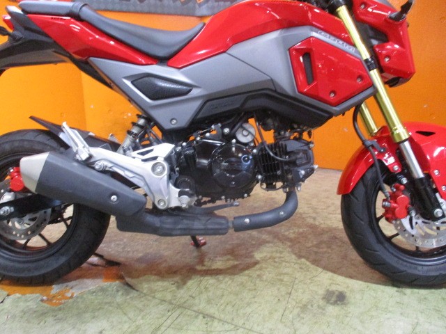 ■スタイリングが一新されたマイナーチェンジモデル。これまでを「丸っこい」とするならば、新デザインは「四角くて、無機質」。LEDヘッドライトを採用したことが分かりやすいフロントマスクになった。また、マフラーもダウンタイプに変更されている。基本的な構成は、従来モデル同様ながら、燃料タンクのキャップが、ヒンジ式となり、給油時も車体から外れないようになったことや、メインキーにフォールディング機構(折りたたみ)が備えられるなどの利便性向上もはかられてた規制前の四角目モデルのグロムに!左右アジャスター機能付社外レバー!ナックルガード!USB電源!ブレースバーを装備!希望の方は09044185332小西まで
