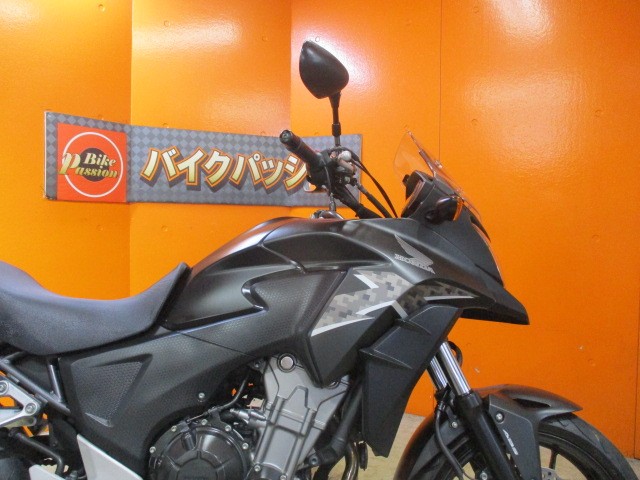 ■中型免許で乗れる!クロスオーバーといえば!この400Xですよね!走行も僅か16729km!でカラーも人気で希少なマットガンパウダーメタリック!これでこの価格は正に他店追従不可能価格!400Xはクロスオーバースタイルでありながら、最高出力46PS最大トルク37Nの400ccのレプリカスペッククのエンジンを搭載!さらに燃料消費率1L=39.7kmの高燃費車両ですから、通勤にもツーリングにももってこいの一台ですよ!中型でのれるクロスオーバーバイクは非常に選択肢が少なく!球数も少ないので、悩むのは本当に危険な一台ですよ!勿論お電話にて通販も可能ですよ!購入を希望の方は09044185332小西まで!!