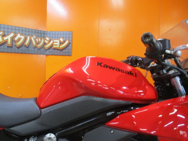 ■フルカウルとアップライトなポジション、高いウインドプロテクション性能を持つスポーツツーリングマシン。輸出モデルであるER-6fをベースに、日本の普通自動二輪免許に適合する400ccエンジンを搭載していた。「Ninja」のイメージを強調するスタイリッシュなフロントカウル、デュアルヘッドライト、段付きウインドスクリーンを装備するツインスポーツとして登場。低中回転域の優れたトルクとスムーズな吹け上がりを実現する、水冷DOHC4バルブ並列2気筒399ccエンジンを搭載していた。このNINJA400Rに分離型ETCにUSB電源までついてこの価格は本当にお安い!購入を希望の方は09044185332小西