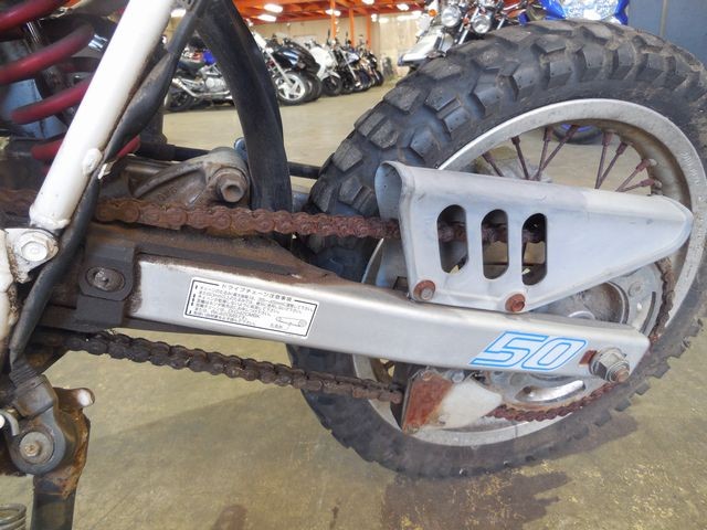 50ccバイクでありながら、270mmというサスストロークが自慢の2スト50ccオフロードですが、サビ・腐食がキツく、一見して長らく放置されていた事が分かる傷みの激しい車両状態でした。