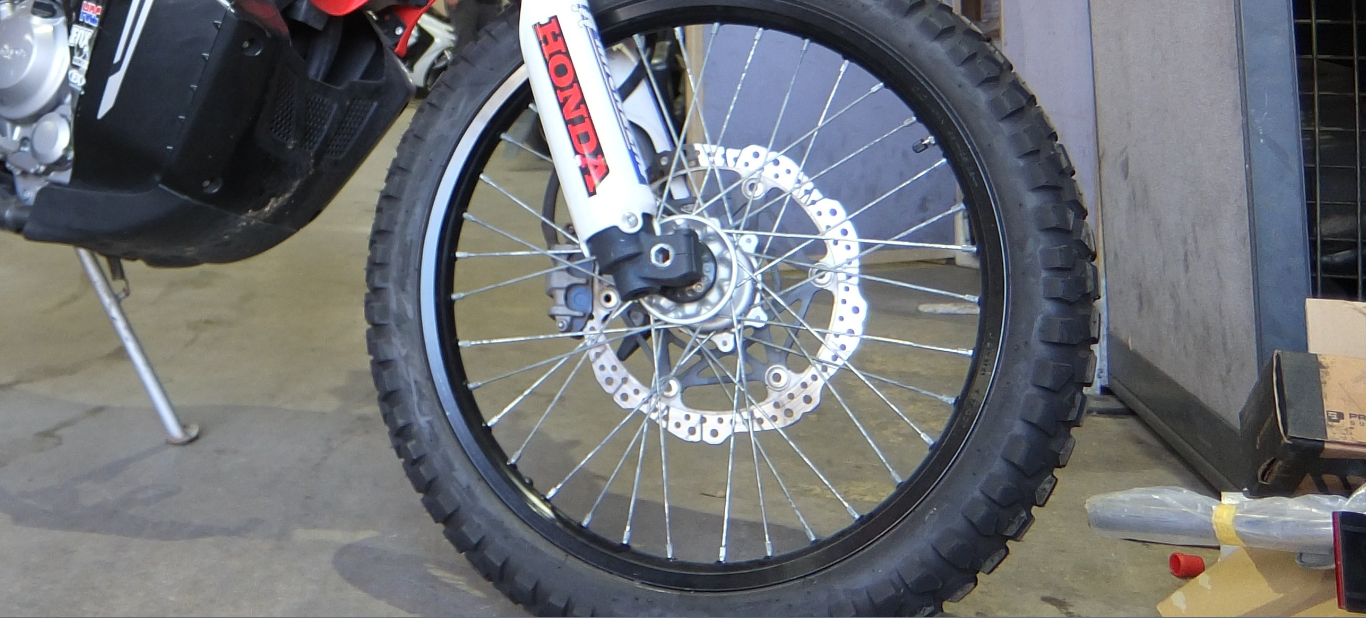 サビキズが目立つフロントホイールと交換時期が迫るブレーキディスク