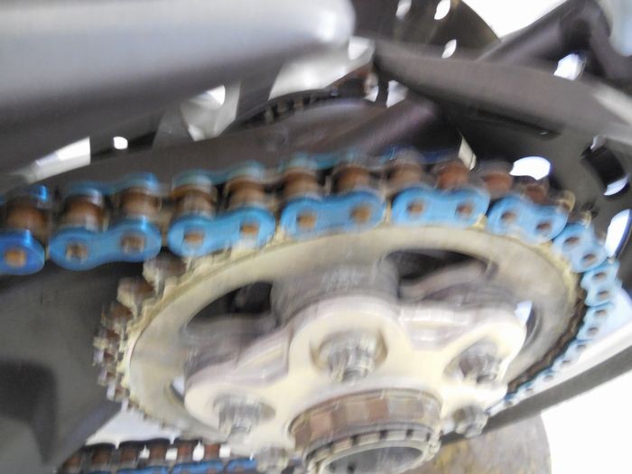 劣化によって要交換判定となったチェーン(外装と合わせてアウタープレートが塗青色になっています)。