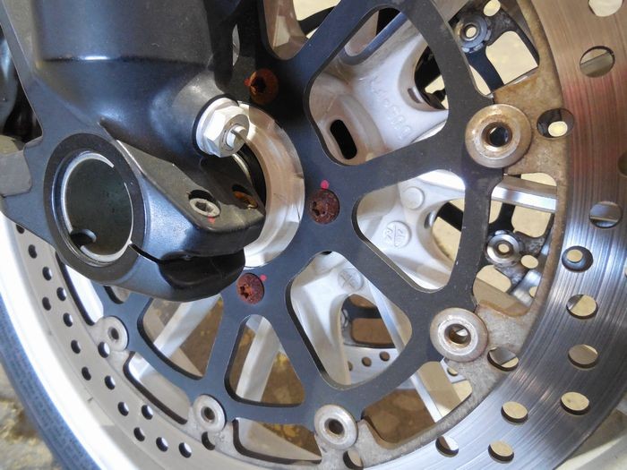 ホイールの錆び傷、ハンドルスイッチの傷や変色、ブレーキフルードタンクの変形と錆び傷、オイルシールの破れ。