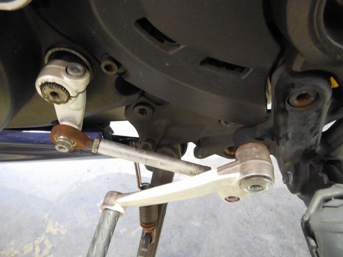 車体を念入りに見ていくと、ブレーキペダルが曲がっています。オーナー様にお聞きすると「2回ほど立ちごけしている」とのこと。