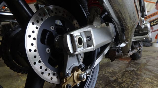 軽いコケ傷やエキパイの目立つ焼け等、所々に減点となる個所がありましたが、車体の見た目の印象を左右する、樹脂コーティングパーツのカウルやタンクなどの外装は艶があり、 エンジン回りや足回りなど劣化や傷がつきやすい個所もメンテナンスされていて綺麗で状態に良かった2007年モデルのGY71A-104