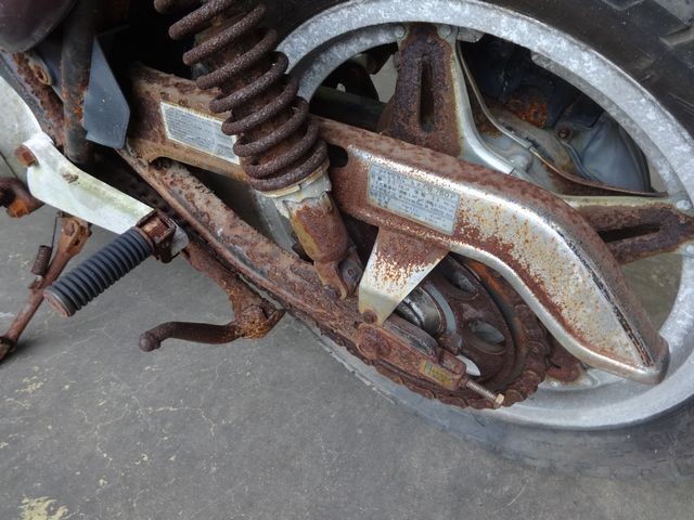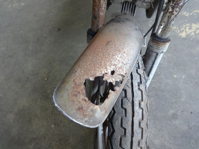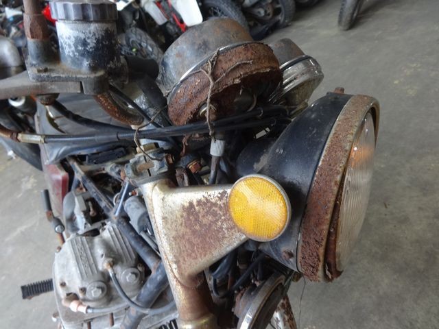 実働車の平均的な買取相場が30~40万円台のCB750FOUR-IIにあって、 金属という金属は全て腐りフェンダー、ホイール、サスペンションなど全て、タンクやカウル等は欠品、あらゆるパーツが修復できない状態でパーツとしても買取価値ゼロ。