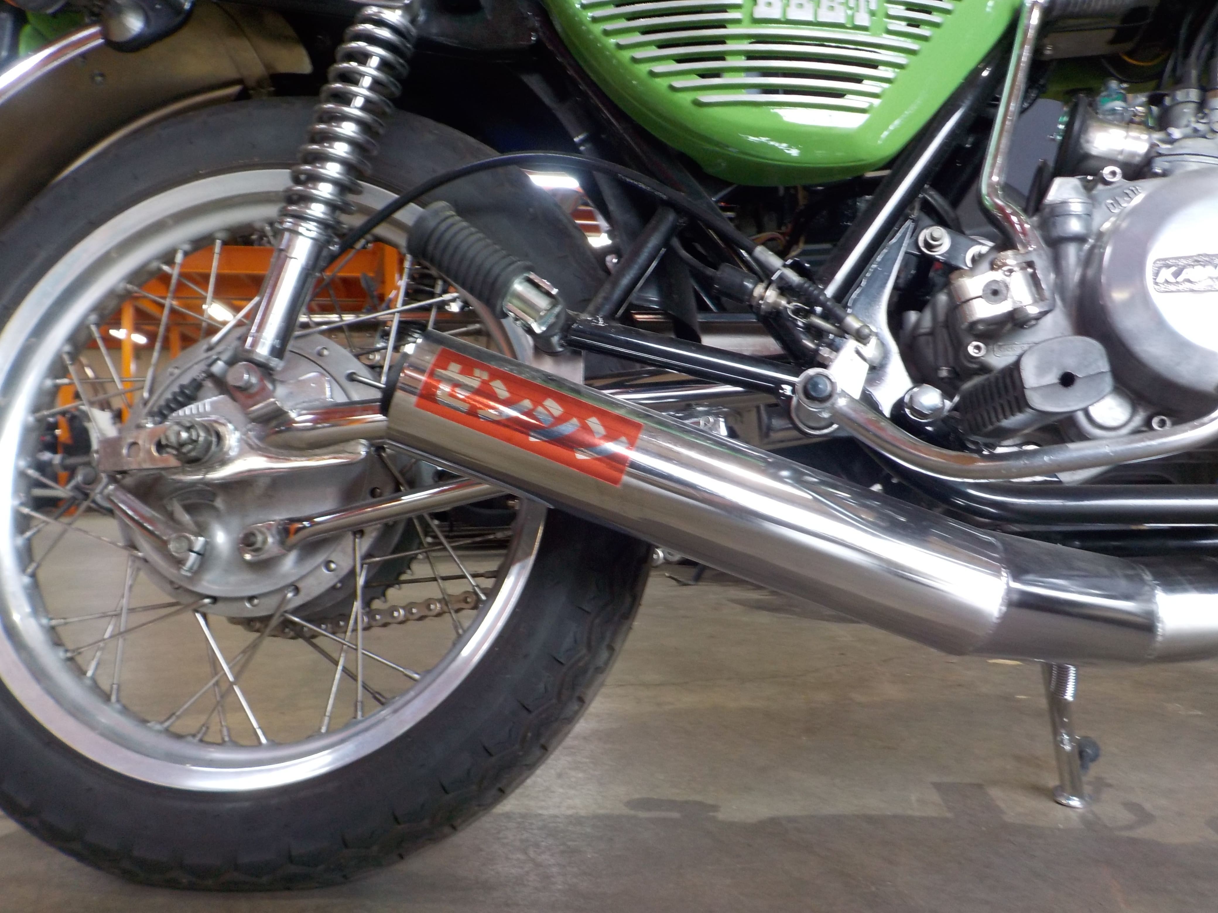 BEET製サイドカバーなどで定番スタイルにまとめあげたカスタムにB5カラーが印象的なKH250 1977年モデル。