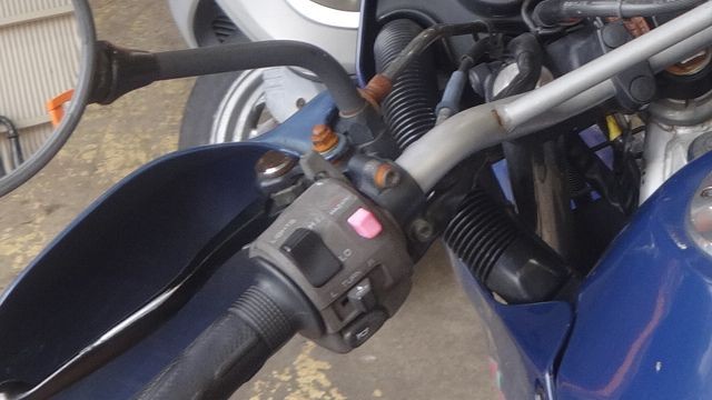 1990年代のデュアルパーパス車として林道やダート走行を楽しまれた車体としては年式並みの状態だったKLE250アネーロ。