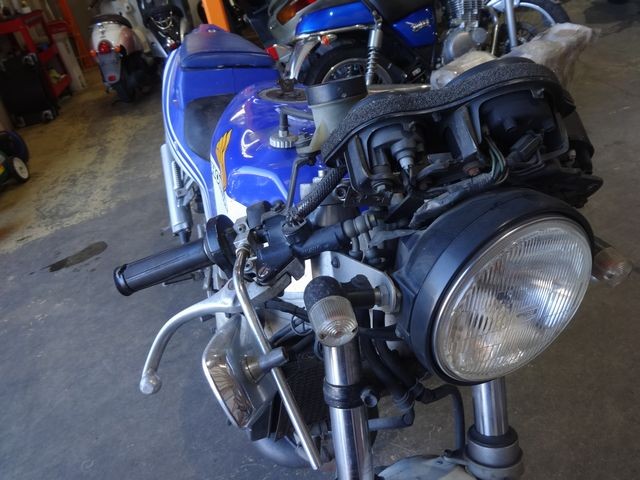 転倒事故によって止む無くネイキッド化されていたMC18型。とはいっても、センターカウルの欠品は大きく査定額の減額につながってしまいました。