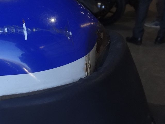 ガソリンタンクは、リム部分の塗装ハゲ、シート側面の大きな凹みと塗装ハゲ、全体に細かい傷が目立ち、内部に錆びが目立ち状態としては良くありません。