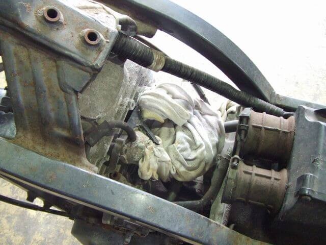 エンジン不動・残存パーツは錆び腐食で覆われ分解コストを吸収できるだけの価値は皆無の状態。自社販売を手がける弊社であれば、他社での処分費用見積もり2万円を8,000円まで抑えることが可能に!