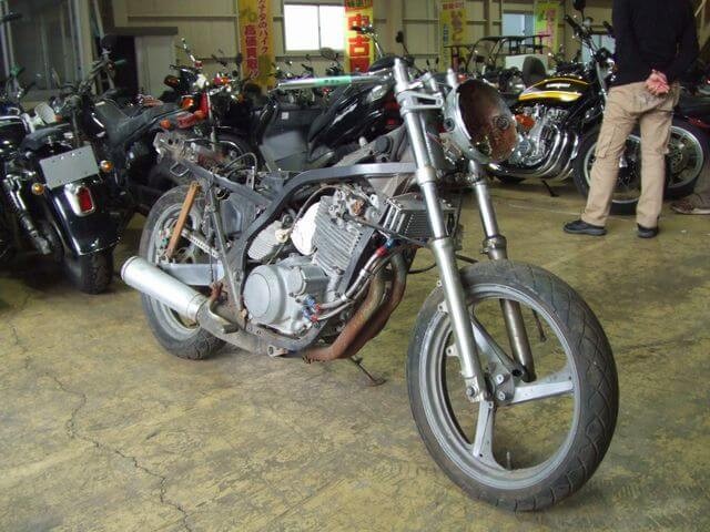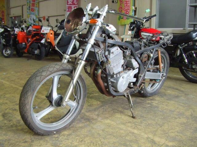 廃車処分のご依頼を頂いて格安にて処分回収致しましたバイクは、部品取りドナー車として主立った部品を取り尽くされ、軒下に10年以上放置されていたため残存パーツもボロボロの状態だった1987年式 SRX400。