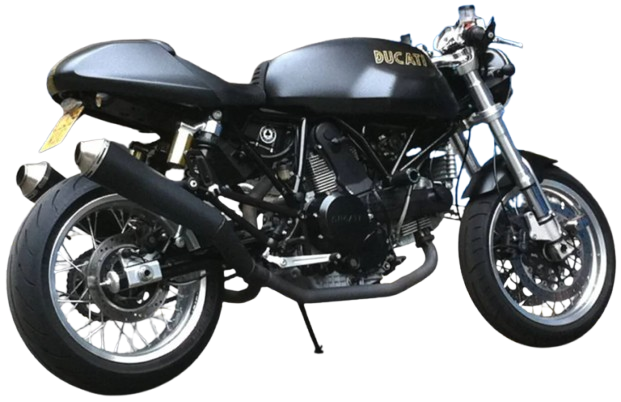 もっとも尖ったSport1000。非対称アップマフラー、低いバー、硬派なスタンス。カフェレーサー思想を最も強く体現する。