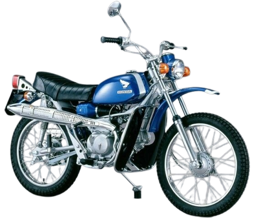 1969年、先行してアメリカ・カナダで発売されていたSL90を、国内ユーザーの強い希望に応えて、8月に国内販売を開始しました。ベンリイSL90は、これまでのスポーツ車のイメージを変えたワイルド・スクランブラーとして登場。低い重心と、高い冷却効率をもったタフな4サイクルOHCエンジン、悪路をものともしない、剛性の高いダブルクレードルフレームと大径タイヤ、高い地上高とロングストロークのクッション、強力なブレーキなどを装備し、あらゆるオフロードを縦横無尽に走行することのできるスポーツスクランブラーとして名乗りをあげたのです。