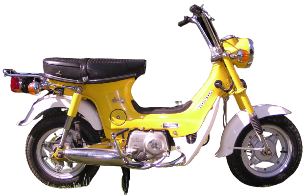 スーパーカブシリーズをベースに、低床アンダーボーンフレームに低シート高、さらに73kgという車重で乗り降りしやすく取り回しも簡単に出来るように設計されていた。