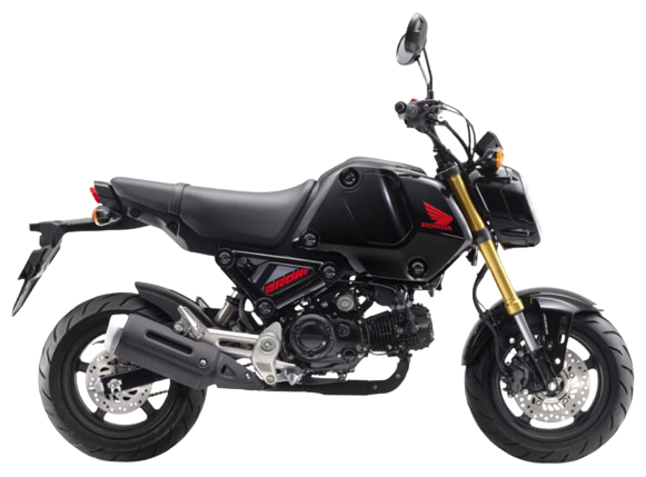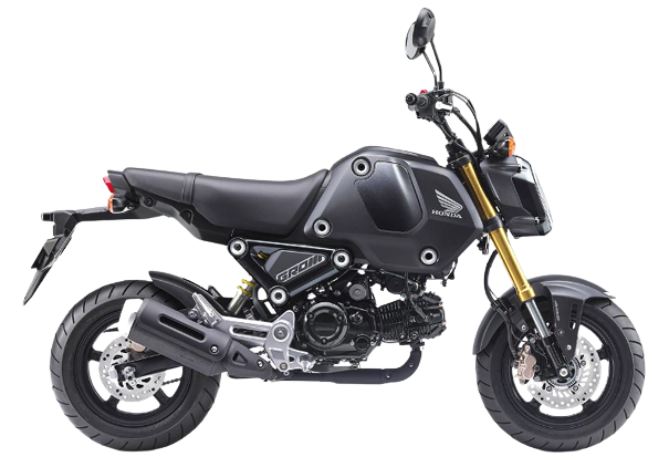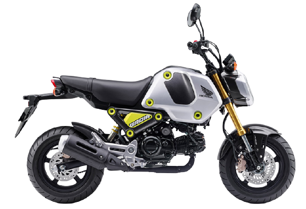 GROM専用に新設計したフレームや倒立タイプのフロントフォーク、ワイドタイヤなどを装備し、カスタム需要も高く世界中で様々なビルドが楽しまれている。
