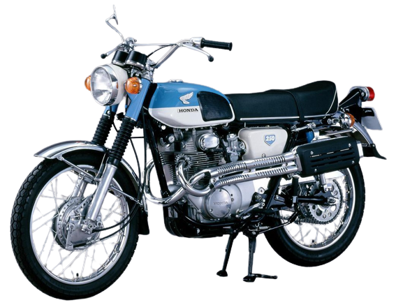 CL250は1968年にCL72の後継機種として発売、同時期に登場のオンロードモデルCB250エクスポートと同様にツートーンカラーに塗られたたニーグリップラバー付のタンクを装備していました。