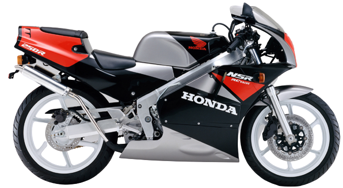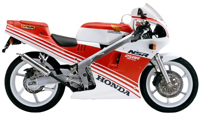 「NSR250R」は1986年から1999年まで販売された2ストロークエンジン搭載のスーパースポーツバイクである。市販モデルの「NSR」シリーズの中ではフラッグシップモデルにあたる。ちなみに「NSR」は、New Sprint Racingの頭文字から取られている。