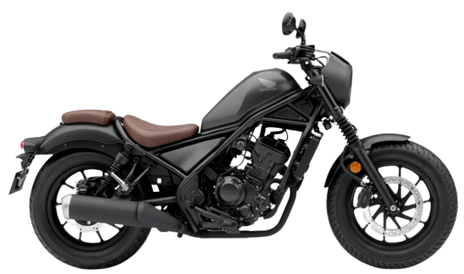 メカニカル機構の変更は無く26馬力仕様のDOHC4バルブ水冷単気筒エンジンをマシンの心臓部に搭載。最大トルクは7,750回転22Nmというスペック。トランスミッションは6速仕様。足元は、フロントにテレスコピック正立フォークを装備して16インチホイールに130mm幅タイヤをセットしてボリューム感を演出。リアは丸型パイプを使用したスイングアームにツインショックを組みあわせる。ホイールはフロントと同径の16インチでタイヤは150mmサイズ。ちなみに上位排気量の「レブル500」も前後16インチ仕様だが、前年に導入された「レブル1100」は、フロント18インチ・リア16インチという前後異径サイズを採用している。さらにトランスミッションはDCTタイプも設定された。
