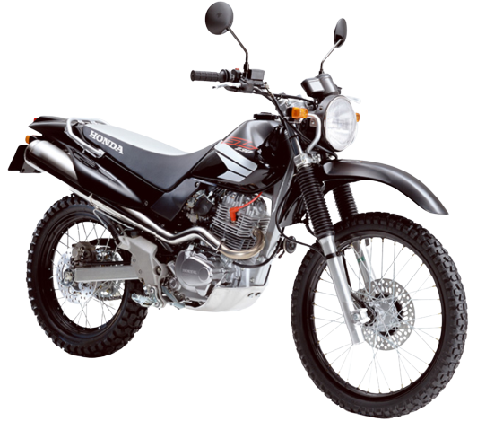 その特徴は、新開発の軽量ピストンやスロットル操作荷重が軽いCV型キャブレターに加え、6速ミッションの採用とあいまって、中・低速域を多用する都市やアウトドアでのトレッキング走行から高速道路を使用するツーリングまで幅広い用途で扱いやすい出力であること。また、フレームは、エンジンを強度メンバーとするダイヤモンド型を採用することで、スリムな形状と乾燥重量105㎏の軽量な車体を実現しています。さらに悪路走行で威力を発揮する十分な最低地上高(260mm)を確保。