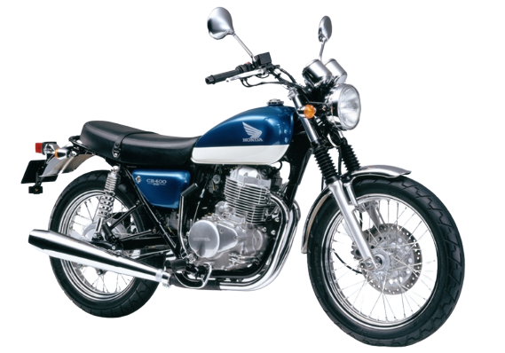 車体は丸パイプ鋼管のセミダブルクレードルフレームに空冷4ストローク397㏄のNC38E型エンジンを搭載。最高出力は7,000回転で29馬力を発揮。吸排気効率と燃焼効率が優れたRFVCタイプの4バルブOHCヘッド仕様だ。デビュー時の始動方式はキックのみという2000年代のマシンにしてはスパルタンな仕様。「SR400」に真っ向から対抗するようなモデルだった。だた、オートデコンプ機構を採用しているのでそれほど大変な操作でないだろう。トランスミッションは5速リターン式だった。