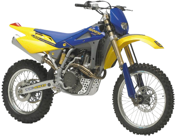 2004年:TE450(初期)市販開始。449cc水冷DOHC単気筒、ケーヒン系キャブレター装備、スチール製クレードルフレーム。