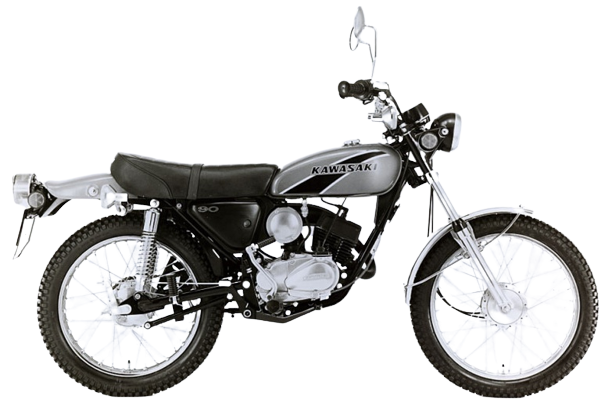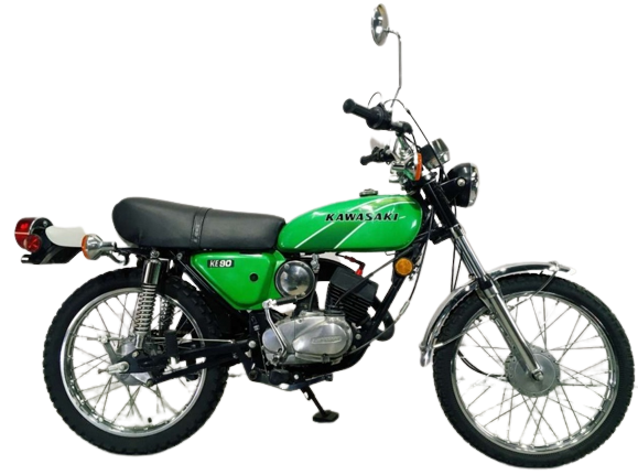 74年に発売された【90TR】が原型ですが、2ストを「K」はじまり、4ストを「Z」はじまりとしたKawasakiの車名整理に合わせて車名にKEの名がつきました。