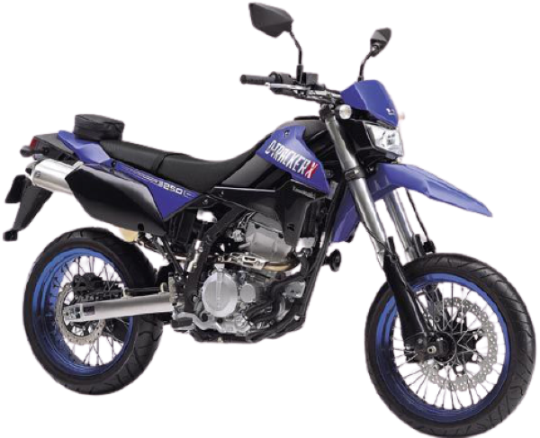 2007年末にはライバルモデルとしてヤマハから本格的なモタードマシン「WR250X」がデビュー。125kgの車体に31馬力を発揮する249ccエンジンを搭載していた。