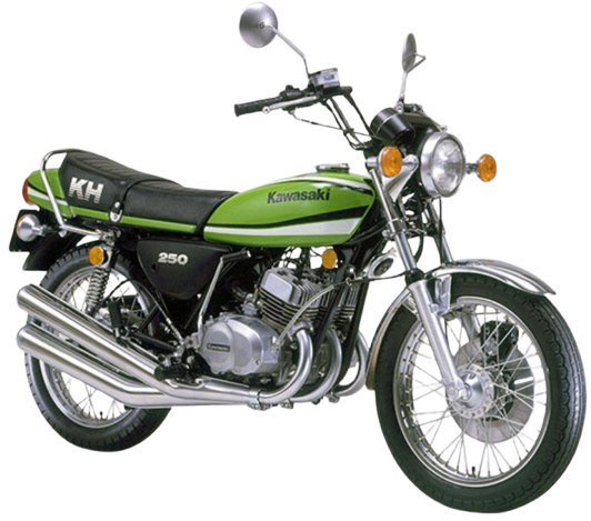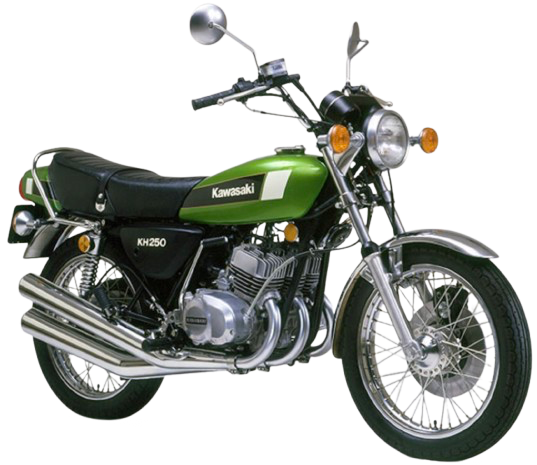 その末弟にあたる250SSをベースに、排気ガス規制などへの対応化を果たし、1976年にモデルチェンジしたのが正統後継機となるKH250(ケーエイチ250)。