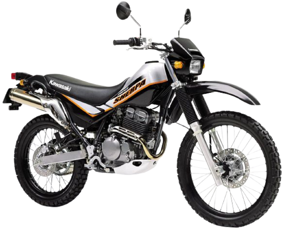 パワフルさで知られ評価が高かったKLX250の水冷エンジンを敢えて空冷へと戻し、トレッキングバイクとして1997年にリリースされたカワサキ・Super Sherpa(スーパーシェルパ)。