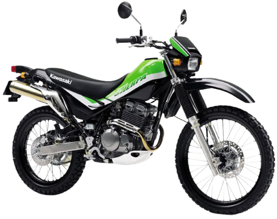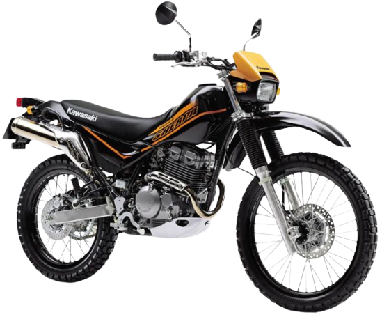 兄弟車にKLX250をもち、エンジンには空冷4ストロークDOHC単気筒を搭載、最高出力は26PS/8,000rpmを発揮し、SuperSherpaでも馬力規制前の前期型、フルパワーモデルと呼ばれ、ダウンフェンダーのモデル(G1型)とアップフェンダーのモデル(H1)の2パターンが設定された。