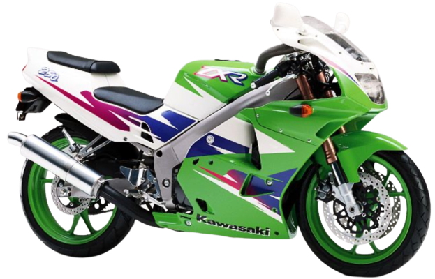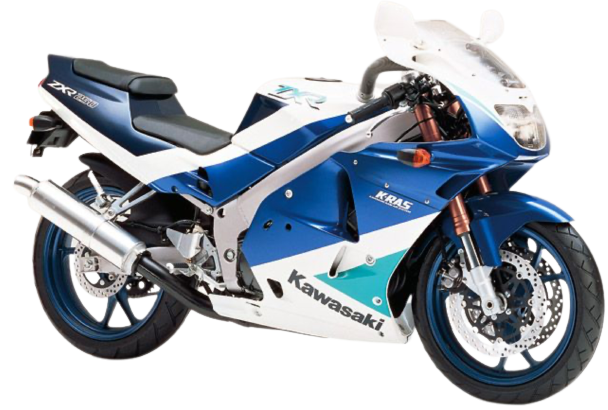 4スト250ccレプリカでは最後発ながら、カワサキ初となる249cc水冷4スト直4ユニットを搭載し、レッドゾーン1万9,000回転という規格外の超高回転マシン。「F1サウンド」とまで呼ばれた爆音エキゾーストを始め、同社初のラムエアシステム・K-RASを採用。更には国産量販レプリカ初の倒立フロントフォークや、E-BOXと命名されたアルミ製ツインスパーフレームなどの豪華装備を誇り、最強のニーハンレプリカの名を欲しいままにしました。前期型は750ccの兄貴分・ZXR750を踏襲した独立2灯丸目ヘッドライト、1991年モデルからは一体型2灯ヘッドライトに変更となり、よりレーサーらしいスタイリングに。同時期には減衰力調整機構付リアサスと32φ大径キャブとクロスミッション採用のSPレース仕様車・ZXR250Rもリリースされ、ホンダ・ヤマハ・スズキのSPマシン勢を上回る実力を見せ付けることに。1992年には国内自主規制により、最高出力を40PSにまで落としたものの、その戦闘力の高さは健在で、1999年まで販売が継続されました。
