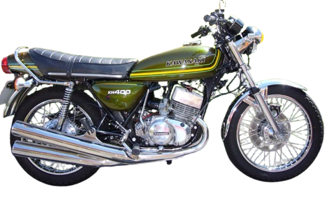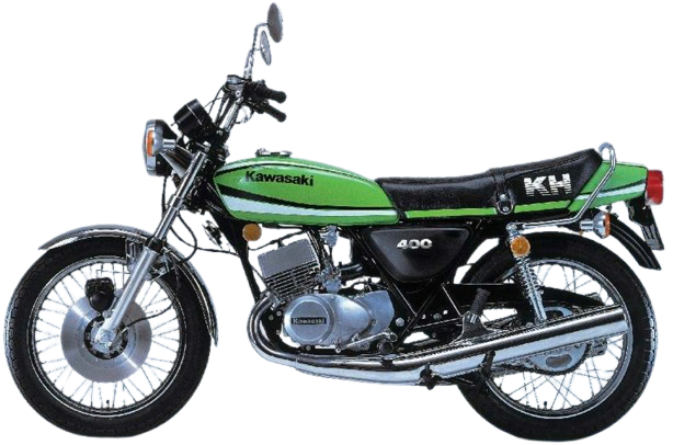 スズキ・GT380やヤマハ・RD350といったライバル勢に対抗すべく、350SS(マッハII)のボアを変更した400SSの電装系を見直し、最高出力38PSとマイルドで扱いやすい性格にしてモデルチェンジしたのが1976年発売のKH400。