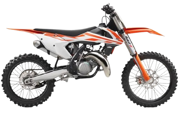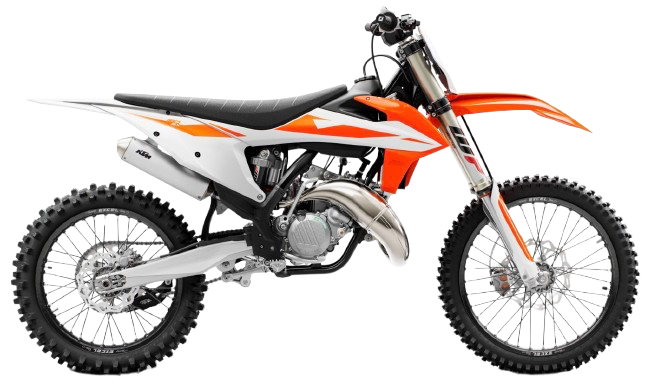 そのコンセプトは「The Ultimate Adrenaline Rush. (究極のアドレナリン・ラッシュ)」。最新鋭のシャシーに、クラスを超えた2ストロークパワーを搭載し、ライダーのスキルを覚醒させ、勝利へと導く純血のレーシングマシンである。エンジンは水冷2ストローク単気筒、排気量143.99cc。キャブレターモデル (2017-2022)は、中〜高回転域で炸裂するような、暴力的とも言えるパワーが特徴であり、ライダーによるセッティングの妙が、マシンの速さに直結するアナログな面白さを持つ。TBIモデル (2025-)は、燃料噴射により、標高や気温の変化に自動で燃調をアジャストし、よりスムーズで扱いやすいトルク特性と、驚異的なレスポンスを両立。始動もセルボタン一発である。フレームはクロモリ鋼セントラルダブルクレードルフレームを採用。コンピューター解析により算出された「計算された柔軟性(engineered flex)」が、優れた直進安定性とコーナリング性能を両立させ、大きな進化を遂げている。変速機は6速MT(モトクロス向けクロスレシオ)だ。足回りは、フロント80/100-21、リア100/90-19のタイヤを装着し、モトクロスでのハイパフォーマンスを追求。サスペンションはフロントにWP製 XACT AER 48エアフォーク、リアにWP製 XACTリンク式モノショックを装備する。エアフォークは専用ポンプ一つでスプリングレートを自在に変更でき、圧倒的な軽量化にも貢献している。ブレーキは前後ともにBrembo製油圧式ディスクブレーキとウェーブディスクローターを装備し、疑う余地のない、世界最高峰の制動力とコントロール性を誇る。極限までスリム化されたシュラウドとフラットなシートが、ライダーの前後左右への自由な体重移動をサポートし、あらゆる状況でマシンを完璧にコントロールするための、アグレッシブなライディングポジションを構築している。2025年モデルからはキックスターターも廃止され、セルスタート専用となった。