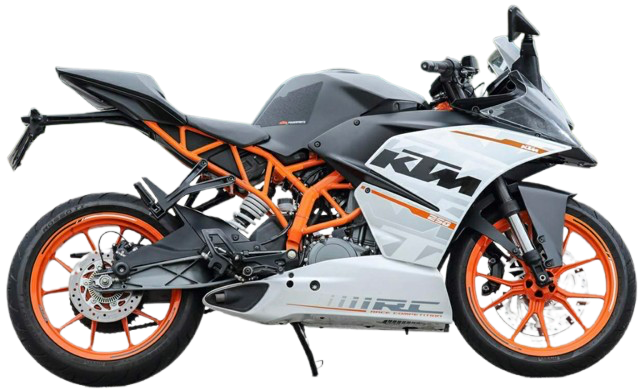 高回転域での軽快なレスポンスが特徴のエンジンは、同社の看板シリーズである250デュークが土台。最高出力31PSを9,000回転で発揮する仕様ながら、中回転域でのトルクもまずまずあり、フルカウル250ccモデルとしてはかなり守備範囲が広い部類に入ります。車体自体のアグレッシブなデザインもさることながら、前述のパワーユニットを125クラスの軽量ボディへ搭載することにより、乾燥重量147kgという驚異的な軽さを実現していることが最大の特徴と言えるでしょう。これだけならばカジバ・アプリリアといった海外メーカーモデルにはままあることですが、そこで留まっていないのがその運動性の高さ。前後WP製サスペンションを採用し、さらに軽量かつ高剛性の車体を活かした軽快なハンドリングを武器とし、KTMが参戦するMoto3テクノロジーの粋を結集した意欲作です。373ccエンジンを搭載したRC390は兄貴分に当たりますが、出力特性などの面ではかなりキャラクター性が異なっており、こちらは5,000回転前後の常用域で真価を発揮するタイプ。小さめのサーキットなどではその特色がよく分かり、多少シフト操作が甘くとも器用にこなせる懐の深さが乗り手を楽しませてくれることでしょう。鮮烈なオレンジが目を惹くカラーリングもよく、女性ライダーからの支持が多いのも納得。