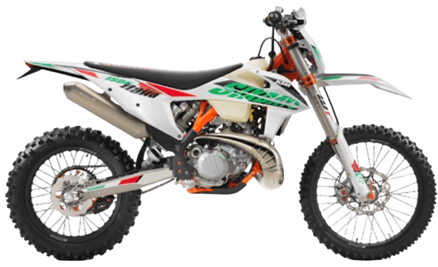 「The King of Extreme Enduro. (エクストリームエンデューロの王)」というキャッチコピーの通り、あらゆる難所を走破し、ライダーをゴールへと導くために生まれ、進化を続けるマシンである。エンジンは水冷2ストローク単気筒、排気量293.2cc。極低回転から湧き上がる粘り強いトルクと、瞬発力のあるパワーが特徴だ。2018年のTPI、2023年のTBIと、インジェクションシステムの進化がその扱いやすさと戦闘力を飛躍的に向上させている。フレームは、エンデューロに求められる「しなやかさ」と剛性を両立したクロモリ鋼セントラルダブルクレードルフレームを採用。2024年モデルではアンチスクワット性能を大幅に向上させた新設計フレームが用いられた。変速機はエンデューロ向けワイドレシオの6速MTである。足回りは、フロントに90/90-21、リアに140/80-18のタイヤを装着。難所でのトラクションを最優先した18インチリアタイヤが特徴だ。サスペンションはフロントにWP製 XPLORオープンカートリッジフォーク、リアにWP製 XPLOR PDS(リンクレス)モノショックを装備する。リンクレス構造によるメンテナンス性の高さと、障害物への引っかかりにくさがハードエンデューロで絶大なアドバンテージとなる。「SIXDAYS」モデルには、より高性能なXACTクローズドカートリッジフォークが装備されることが多い。ブレーキは前後ともにBrembo製(年式やモデルにより他社製の場合あり)油圧式ディスクブレーキとウェーブディスクローターを装備し、あらゆる状況に対応する。ポジションはスタンディングでのマシンコントロールを重視したスリムで動きやすい設計で、テクニカルなセクションでライダーが積極的に体を動かすことを前提としている。装備面では、エンデューロ走行に必須の灯火類、サイドスタンドを標準装備。ラジエターファンやスキッドプレートといった実戦的なパーツは「SIXDAYS」モデルに標準装備されることが多い。TPI/TBIモデルは分離給油用のオイルタンクを備える。