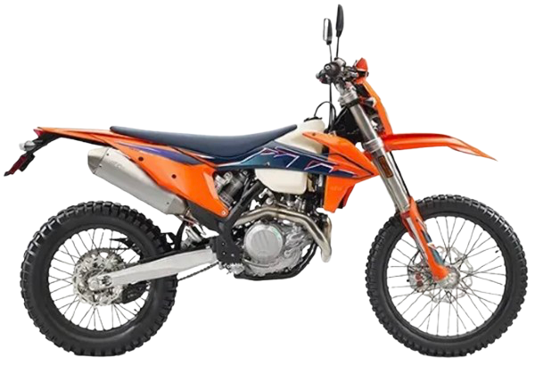 エンジンは水冷4ストロークSOHC単気筒で、排気量は510.9ccである。低回転から湧き上がる強大なトルクはどんな路面でも力強くマシンを前進させ、高回転域では暴力的なパワーを発揮する。世代を追うごとにマスの集中化と軽量化が進み、大排気量とは思えない軽快なハンドリングに貢献している。フレームはクロモリ鋼セントラルダブルクレードルフレームを採用。2024年に完全に新設計され、アンチスクワット性能を大幅に向上させ、加速時の強烈なトラクションと、高速走行時の安定性を劇的に高めた。変速機はエンデューロ向けワイドレシオの6速MTである。足回りは、フロントに90/90-21、リアに120/90-18(または140/80-18)のエンデューロタイヤを標準装備する。サスペンションはフロントにWP製 XPLOR オープンカートリッジフォーク、リアにはKTMエンデューロの代名詞であるWP製 XPLOR PDS リンクレスモノショックを装備している。PDSはリンク機構を持たないため、丸太や岩越えの際に障害物にヒットしにくく、メンテナンス性にも優れる。2024年モデルからは前後共にツールレスでの調整が可能となった。ブレーキはフロント・リア共にBrembo製(年式によりBraktec製)システムを採用し、滑りやすい路面での繊細なコントロール性と、過酷な下りで頼りになる強力な制動力を高い次元で両立している。ポジションはレースで勝つための、スリムで自由度の高いライディングポジションだ。フラットなシートとシュラウドは、シッティングからスタンディングへの移行もスムーズで、長時間のライディングでも疲れにくい設計となっている。装備面では、ウインカー、ミラー、ナンバープレートホルダーといった公道走行に必要な保安部品を全て備える。さらに、夏場のハードなライディングや渋滞路で威力を発揮するラジエーターファンも標準で搭載している。