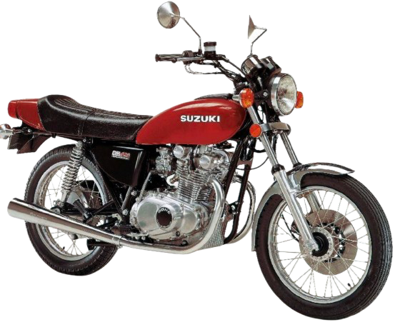 2ストを得意としていたスズキ初の4ストモデルとして登場。同時に400ccクラスではDOHCを採用していた唯一のモデルだった。空冷4サイクルDOHC並列2気筒のエンジンは最高出力36PS/9,000rpmを発揮。ギア駆動の大型バランサーシャフトを搭載することでライダーにスムーズなフィーリングを提供し、軽快な吹け上がりで一躍スズキの人気モデルとなった。