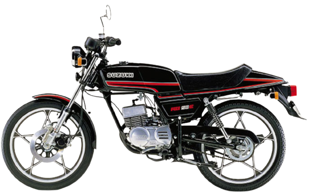 元々RG50として1977年に発売され、スズキ独自の「パワーリードバルブ」を採用した空冷2サイクル単気筒エンジンを搭載し、6.3馬力を発生しました。スポーティなスタイリングは兄貴分の【RG250】を思わせ、スポークホイール仕様、ロントブレーキは機械式ディスクを採用して人気を集めました。