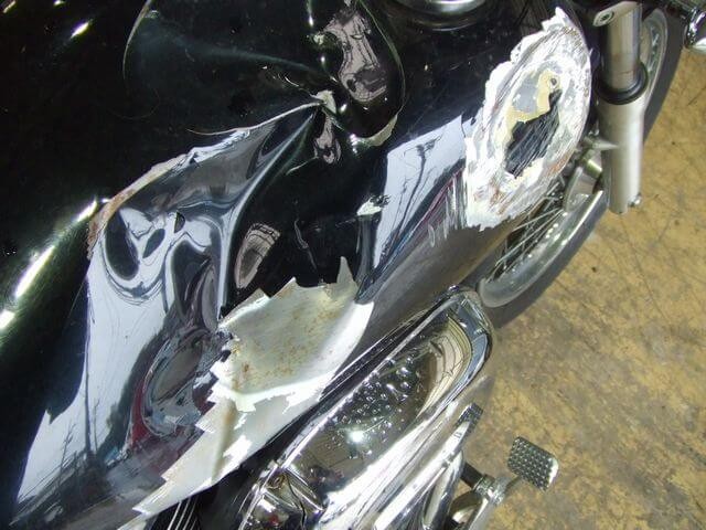 状態:トラックに巻き込まれてタンク凹み亀裂、ウィンカー折れ破損、エアクリカバー損傷