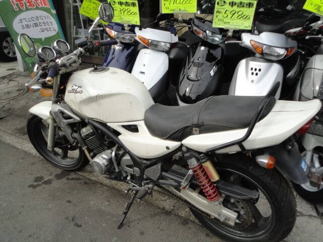 放置不動車としてはフルコースの実働化手順(タンクの錆取りと防腐加工、4発のキャブレターのオーバーホール、プラグ&バッテリー交換)。 色褪せがやや強い外装の状態や車体各所のヤレ・疲労感。そして金属部分に刻まれた削れ傷など。