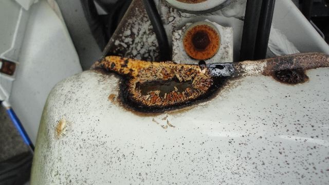 致命的なタンク内サビ、タンク穴開きとネガティブファクターが満載。 ゴム部分の劣化、金属部分の錆びなど長期放置の影響が如実に出ています。 車検証紛失でしたがご名義ご本に様ということで通常通り車両の引取回収から廃車手続きまで無料代行させて頂きました。