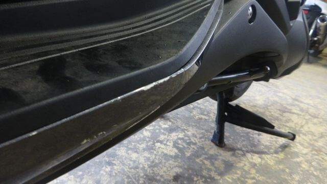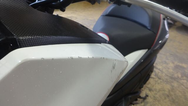 転倒によるこけ傷で、外装カウル各所の割れやガリ傷は約4万円程度の減点、その他は各所の曲りや擦り傷などはカバー類などでは約2万円程度の減点、転倒傷全体で約6万円程度査定金額が目減りしたMF11-100です。