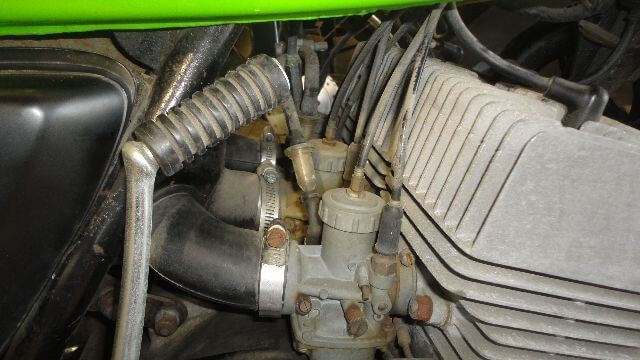 パーツクリーナーをエアクリに吹き付けることでエンジンは始動しましたが、劣化や不調の目立った1台でした。